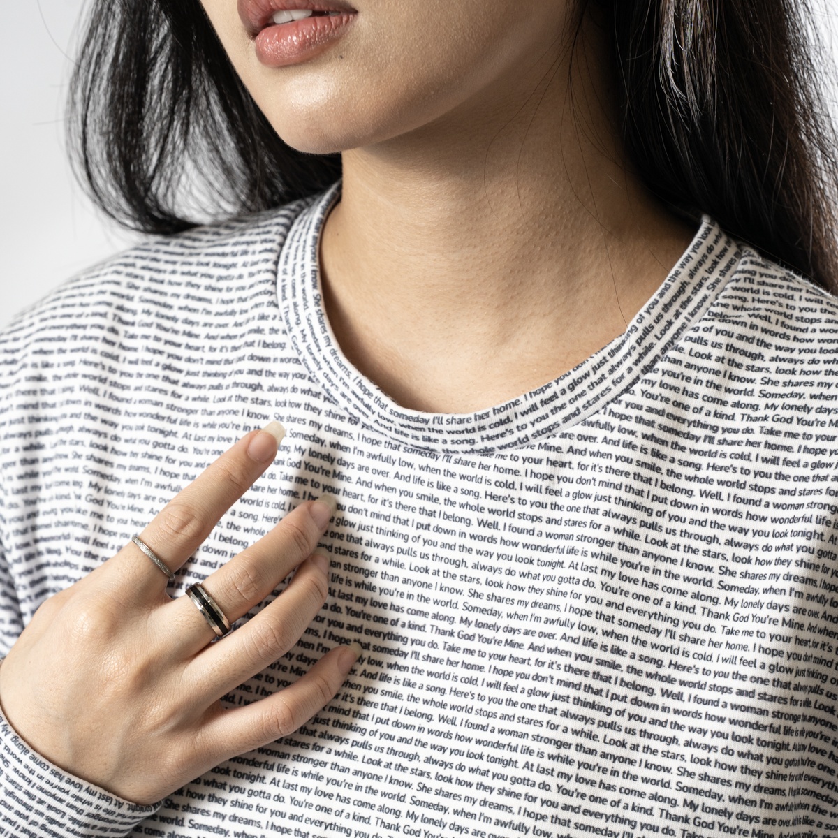 Die meisten Lyrik-T-Shirts sehen billig aus und verblassen schnell. Nicht mit TuneInk.