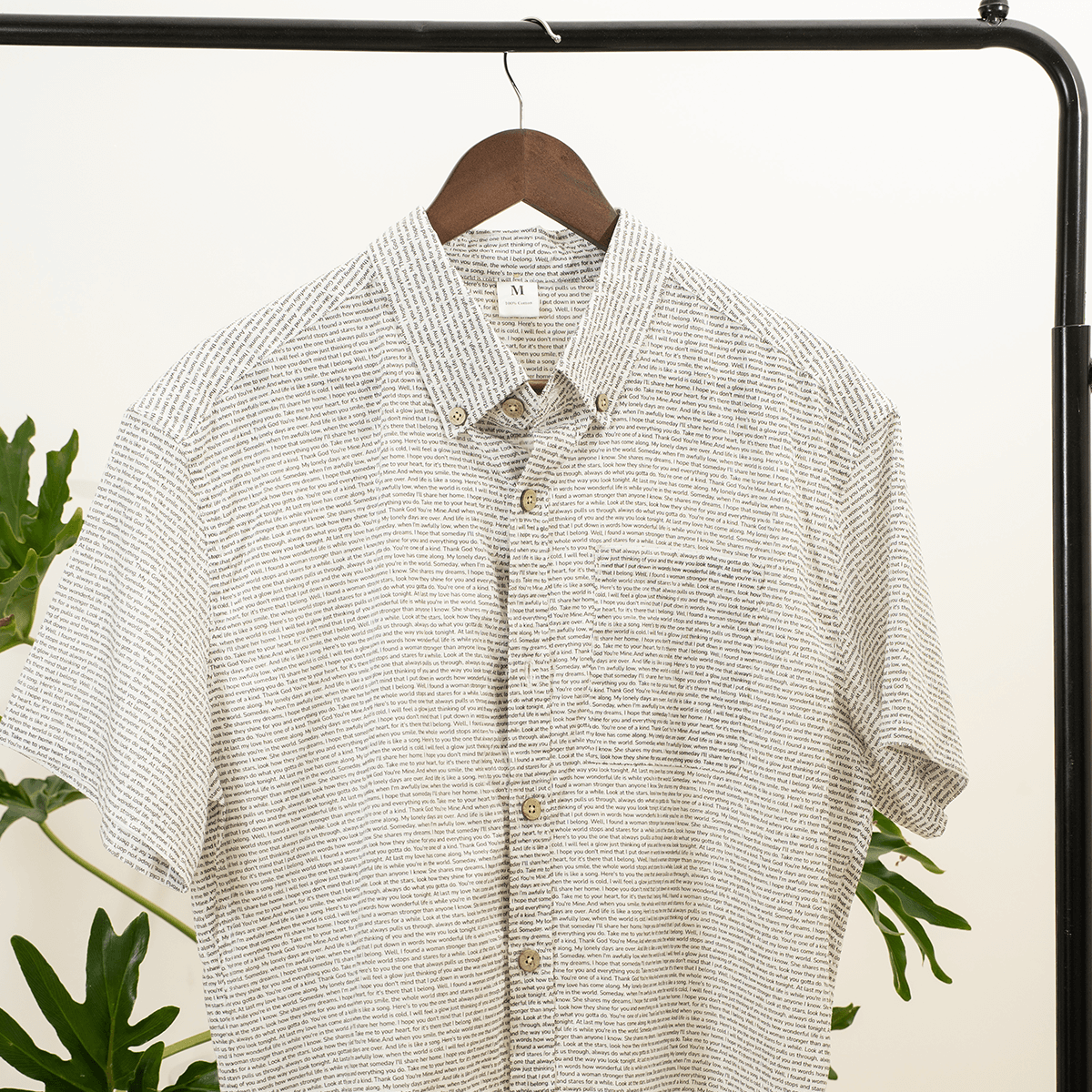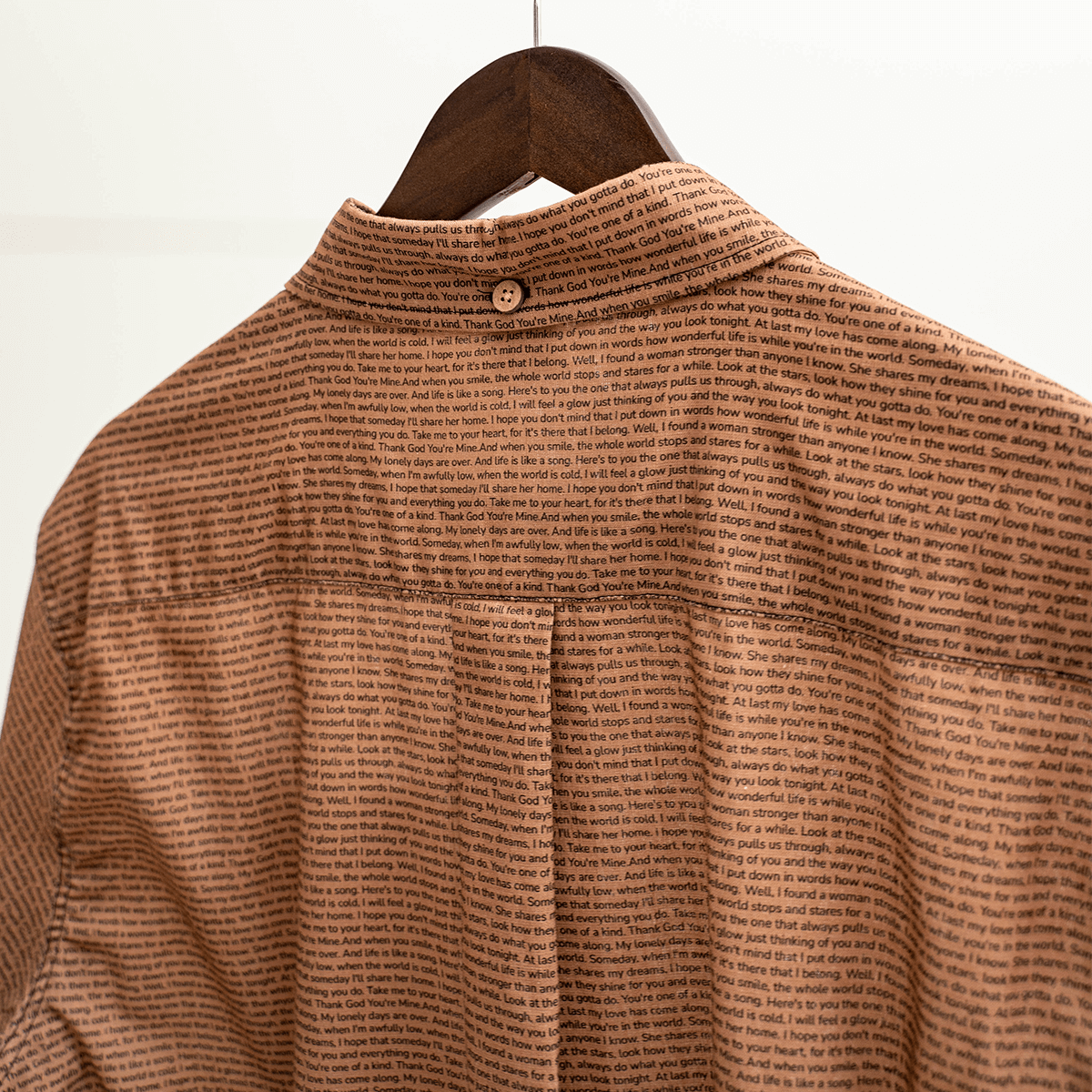 I was looking for something that could showcase my wedding song while still being appropriate for work. This cotton button-up is perfect—the quality is exceptional, and the lyrics are printed so beautifully across the fabric. I love how the back pleats give it such a flattering shape!
