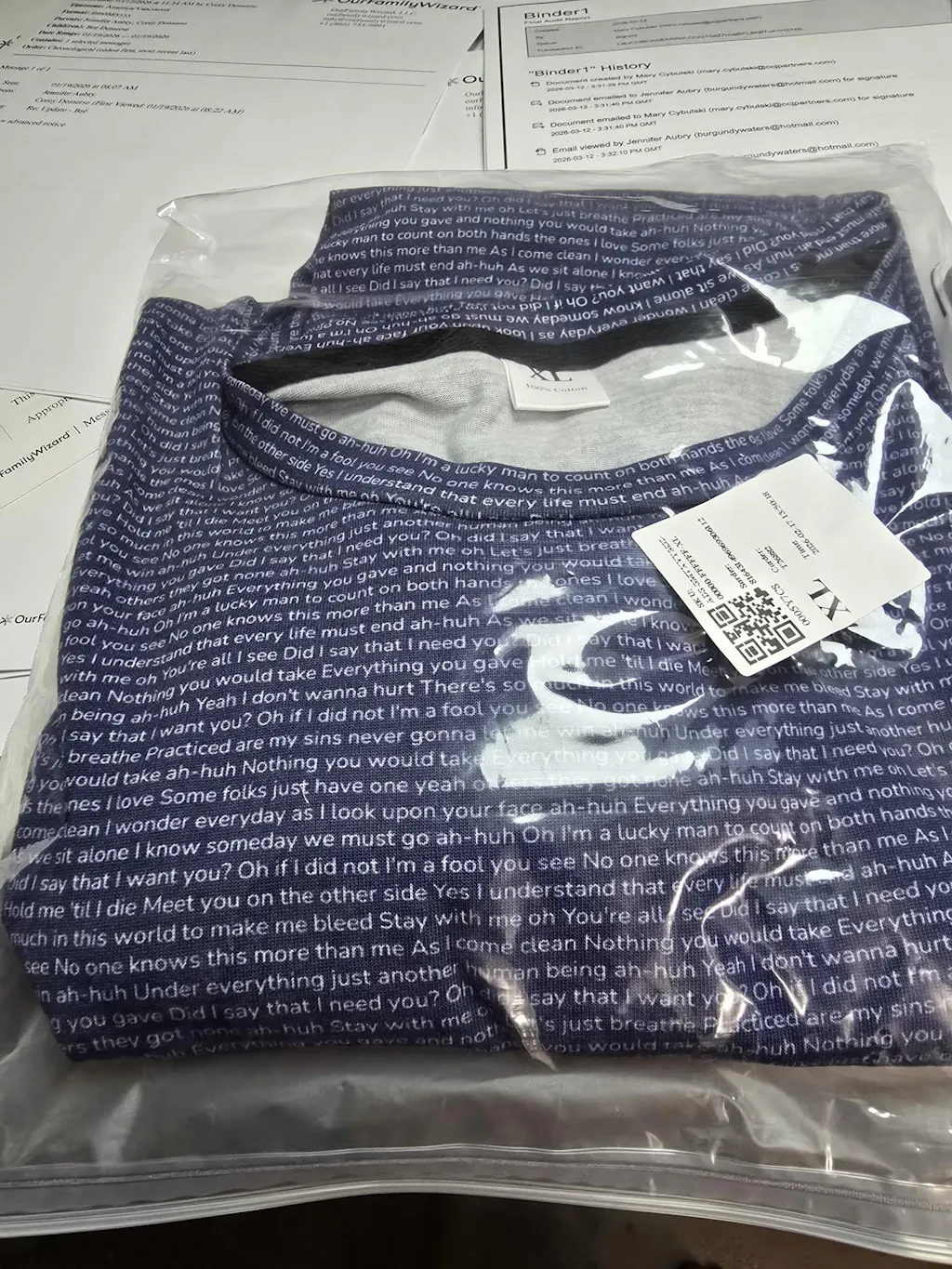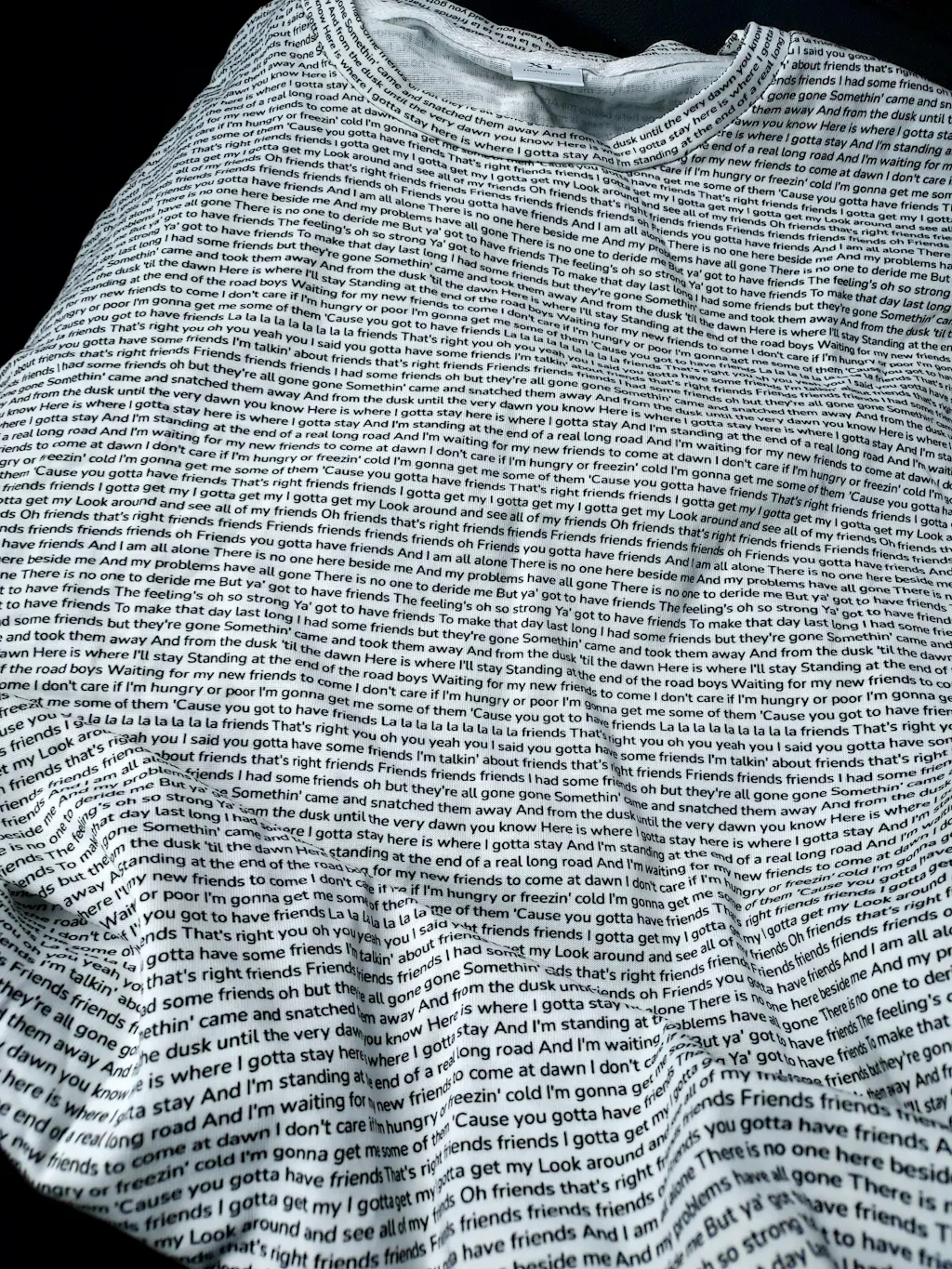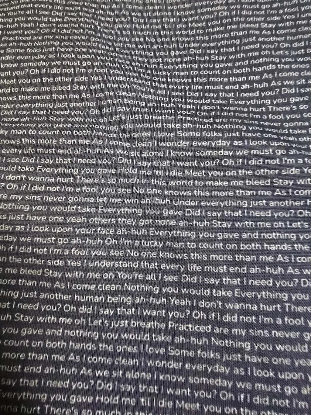Yes! We use high-quality printing techniques that ensure your lyrics stay crisp and clear through regular washing. For best results, wash inside out in cold water and hang dry. Your special lyrics will remain vibrant wear after wear.