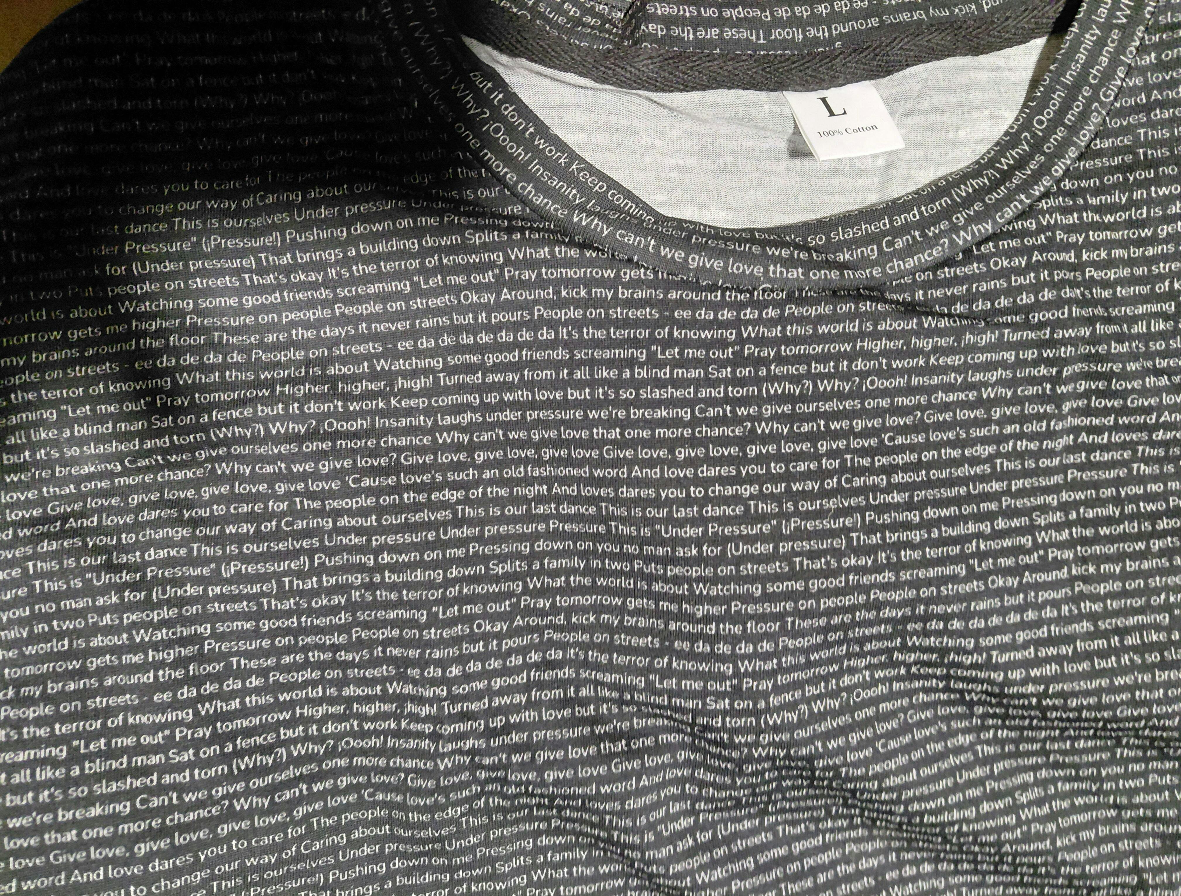 Ja! We gebruiken hoogwaardige druktechnieken die ervoor zorgen dat je teksten helder en duidelijk blijven bij regelmatig wassen. Voor de beste resultaten was je hem binnenstebuiten in koud water en hang je hem droog. Je speciale songtekst blijft na elke wasbeurt levendig.