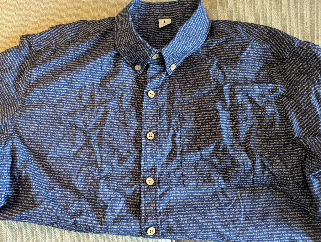 Yes! We use high-quality printing techniques that ensure your lyrics stay crisp and clear through regular washing. For best results, wash inside out in cold water and hang dry. Your special lyrics will remain vibrant wear after wear.